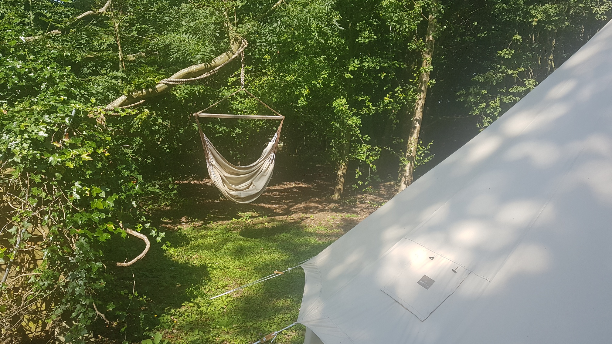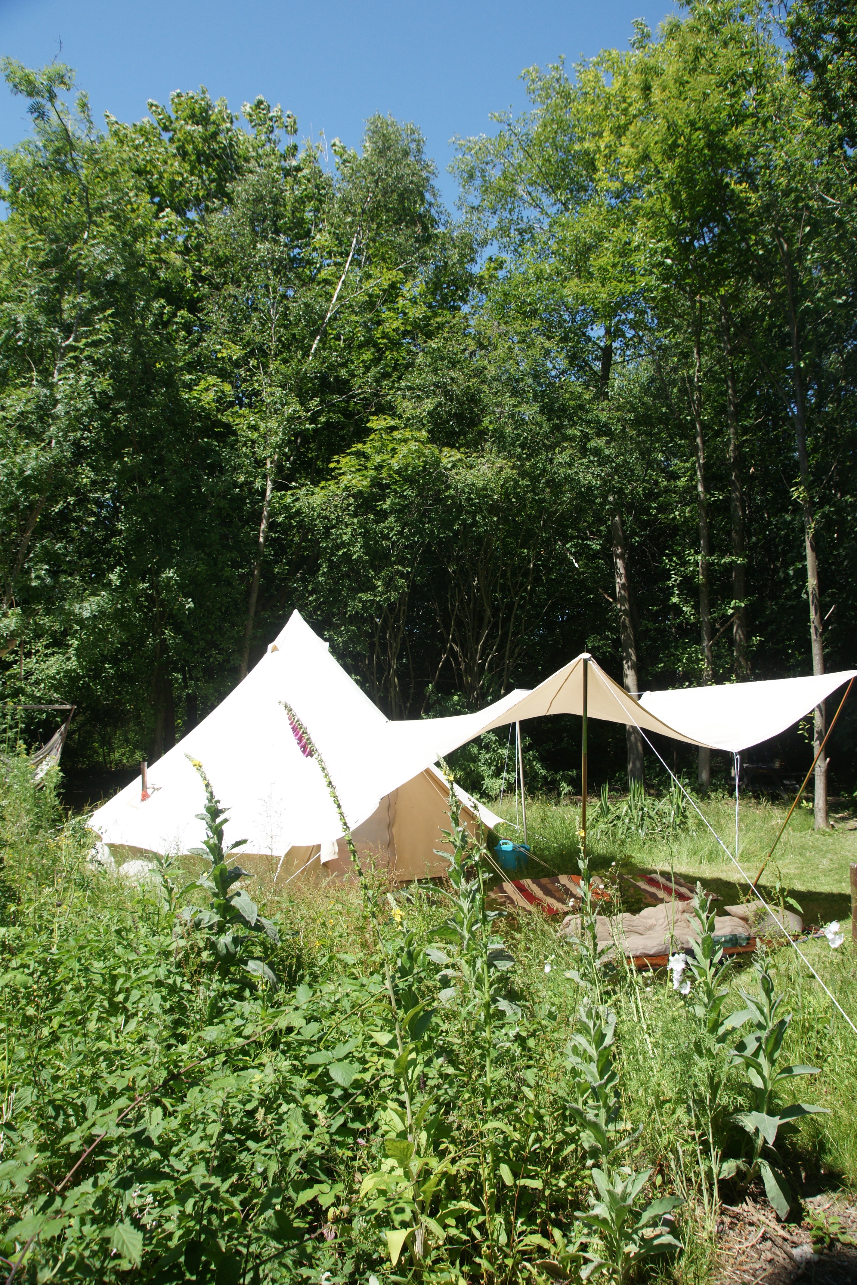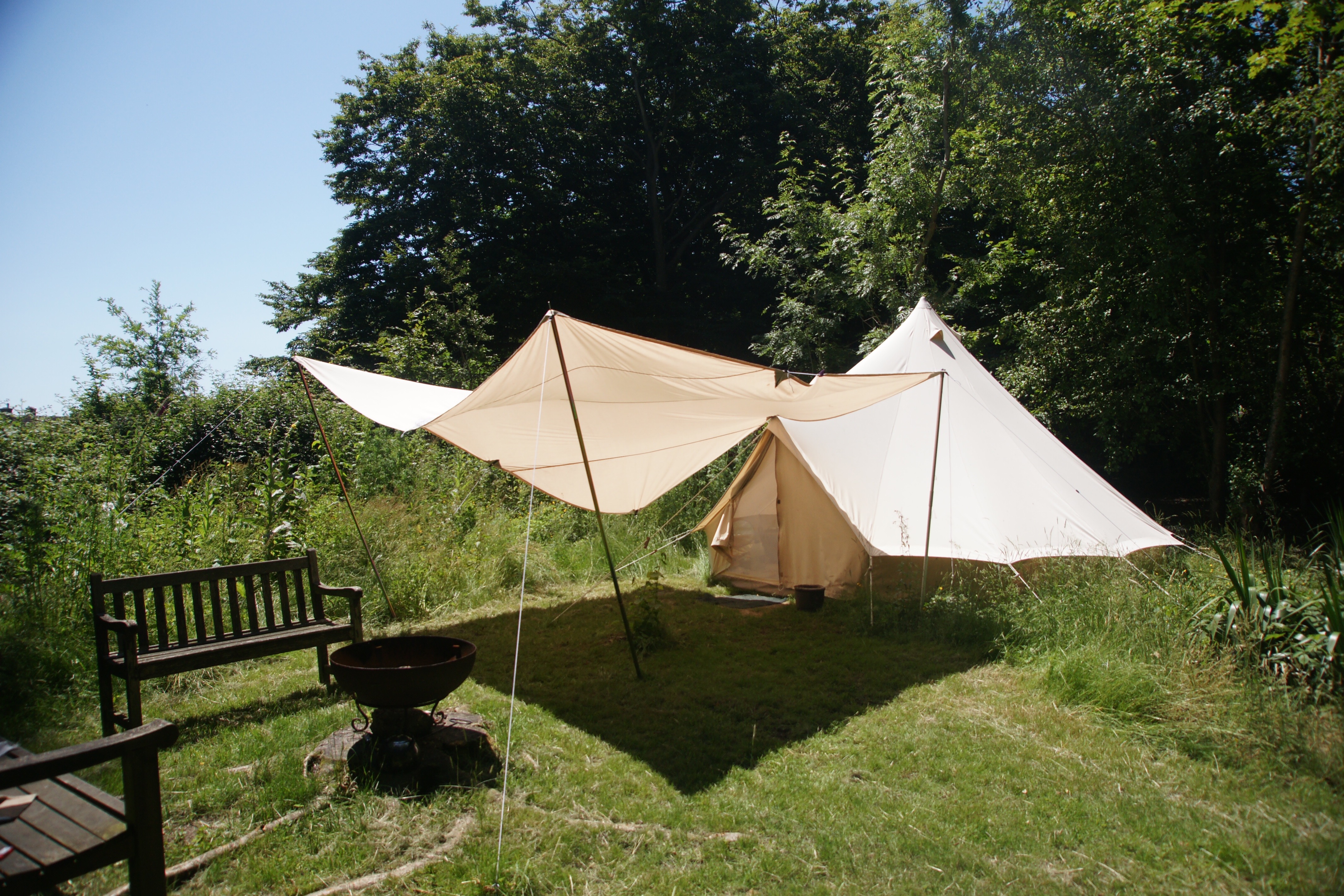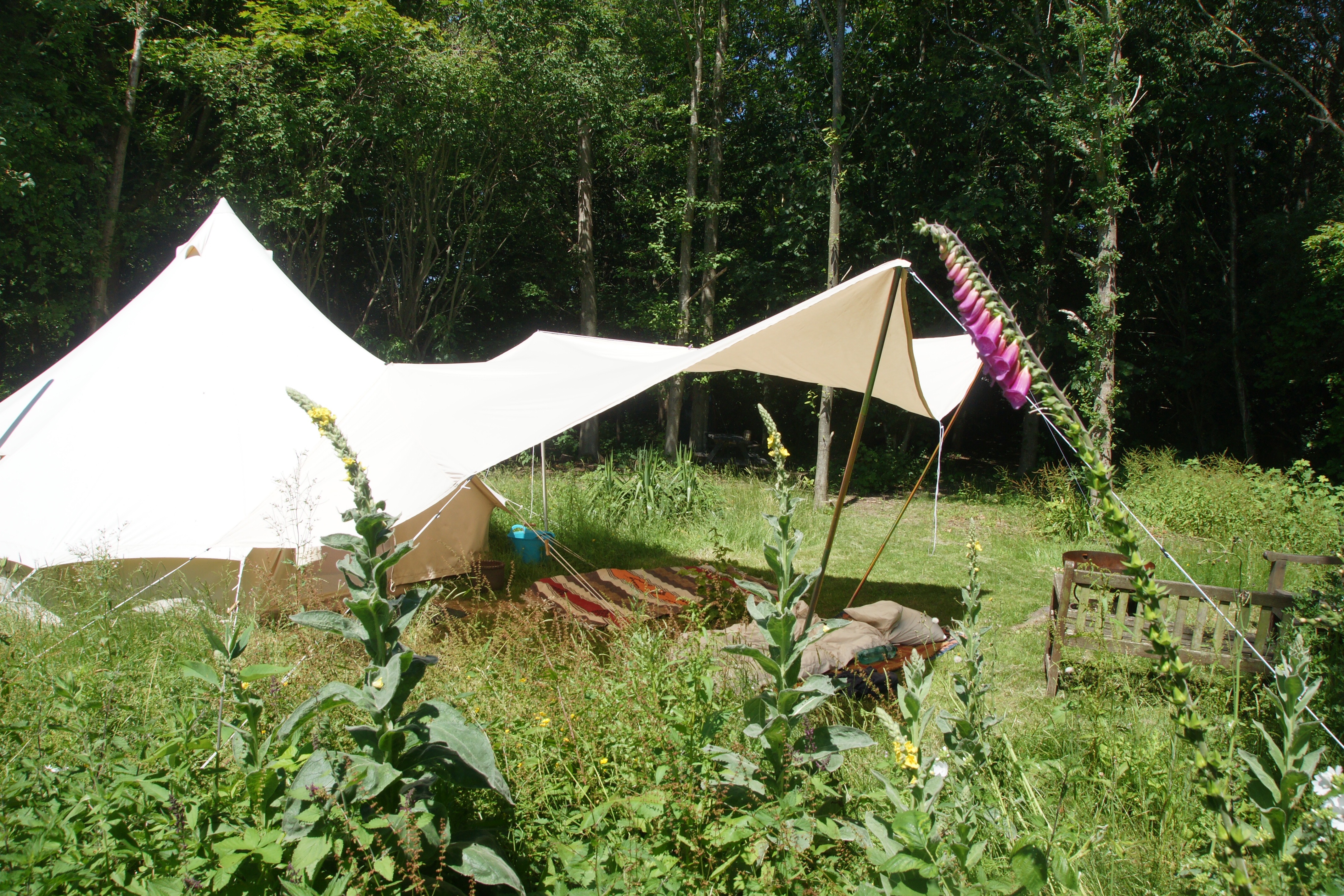 deluxe Bell Tent sits in a sunny glade surrounded by its