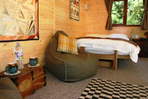 cabin is tucked away in a secret corner, looking out onto a